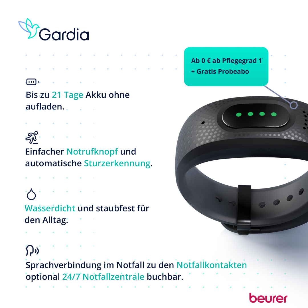 Mobiles Notruf-Armband mit 24/7-Zentrale, Sturzerkennung & GPS.